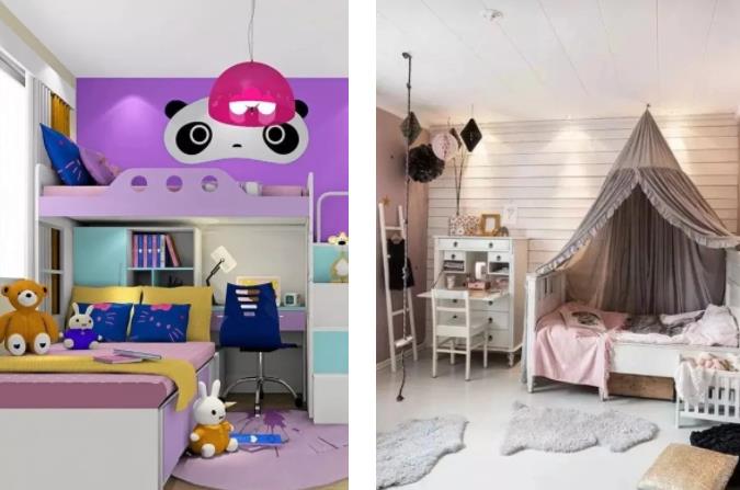 答應我,以上請通通忘掉好嗎,別用自己的想象去代替寶寶的實際需求,用平常心和正常的審美對待兒童房就好,例如下圖,我更偏愛右邊的,你們覺得呢?