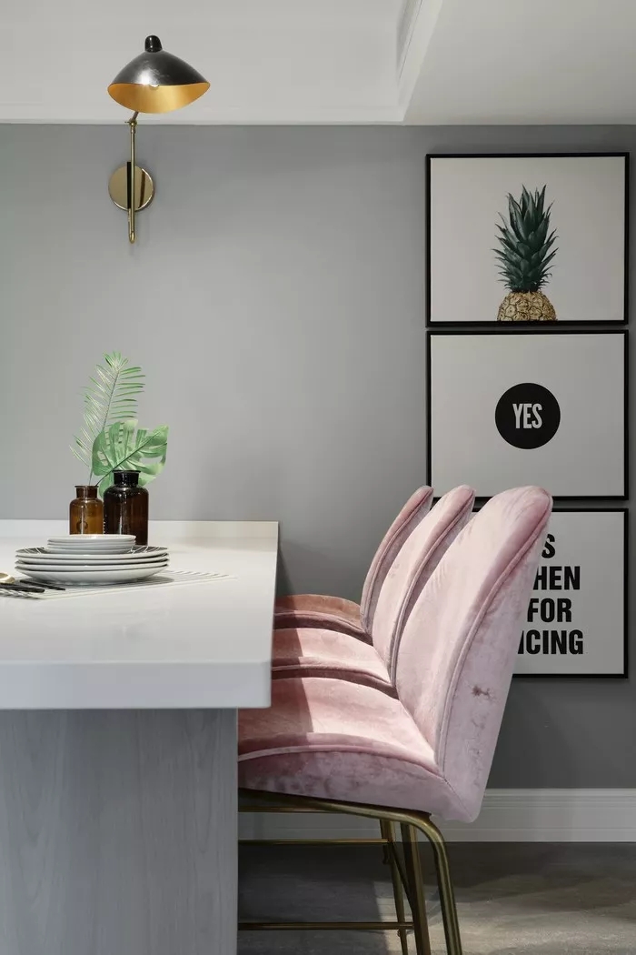 其次,餐桌四周留出足夠的空間。什么叫足夠的空間?就是當餐椅被拉出來,四周還有可以讓人走路的空間,如果沒有,一旦落座,那么誰都別想動。