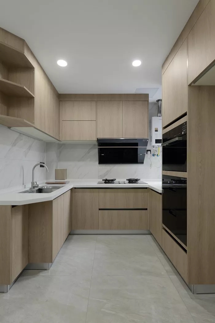 2.一般U型廚房的動線最好,轉過身就可以洗菜、炒菜,各有分工可以很好的提高效率。